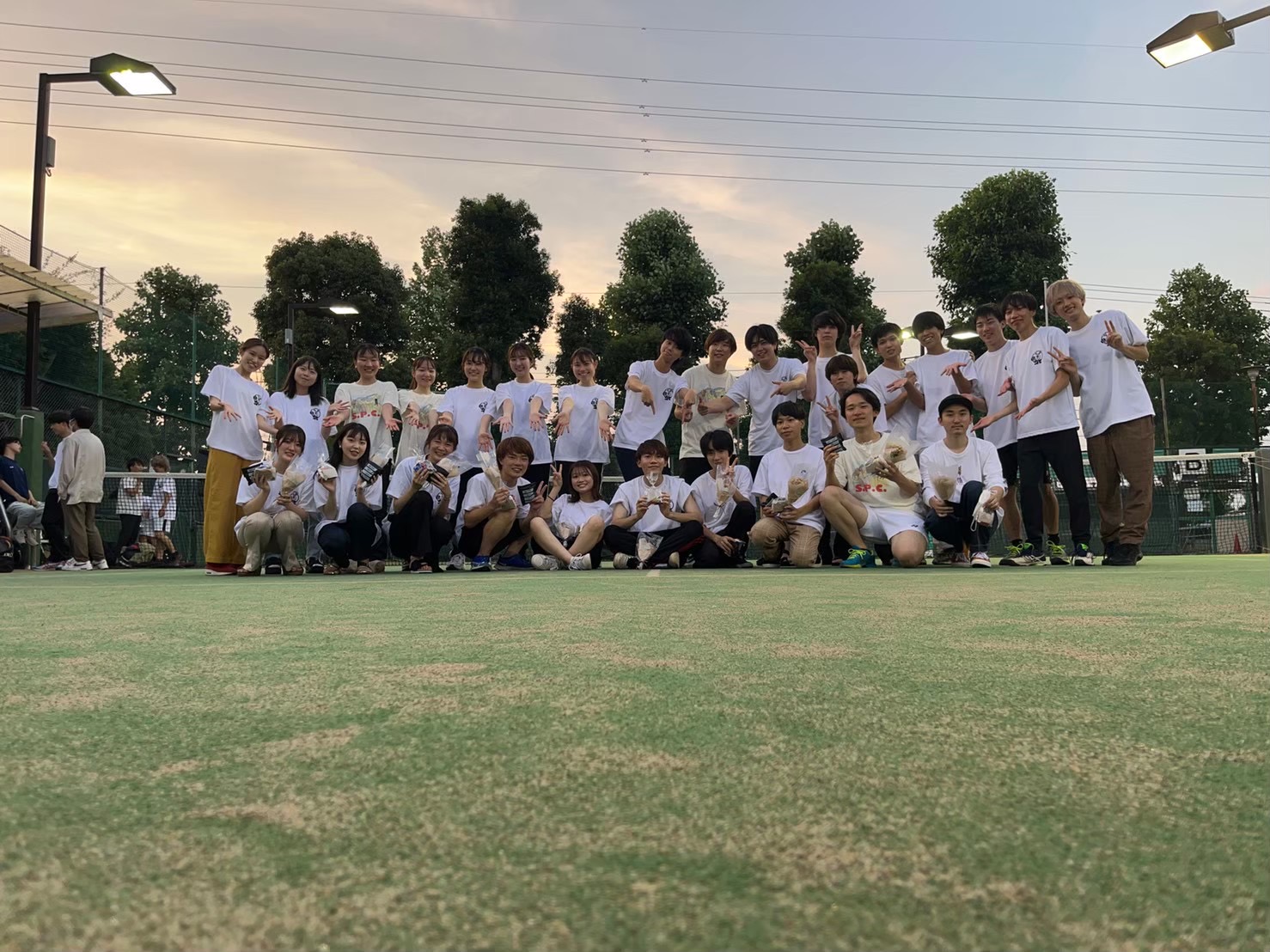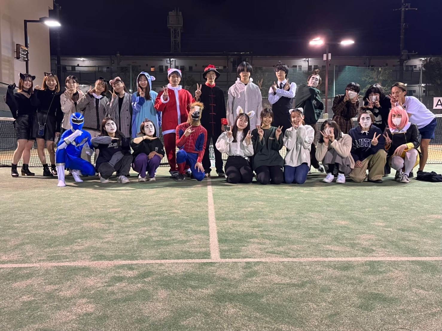 公園イベント 豪華景品をかけてグループ対抗のゲームを行います! BBQ 河川敷でわいわい! ラス練 三年生最後の練習🎾 夏合宿🎇 涼しい山の中で3泊4日のテニス合宿!花火やBBQなど楽しいことが盛りだくさん! ハロウィン 仮装して練習! 学祭 みんなで出店! クリコン ドレスコードをしていいお店へ💃🕺 冬合宿 最初はみんなスノボ初心者!先輩に教えてもらお〜🏂